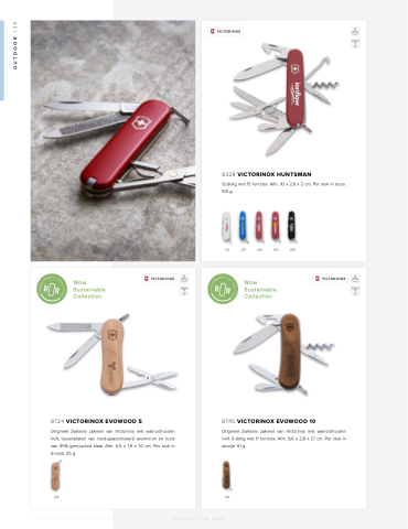 Origineel Zwitsers zakmes van Victorinox met walnoothouten heft, tussenplaten van hard-geadoniseerd aluminium en tools van 95% gerecycled staal. Afm. 6,5 x 1,9 x 1,0 cm. Per stuk in doosje. 25 g.
