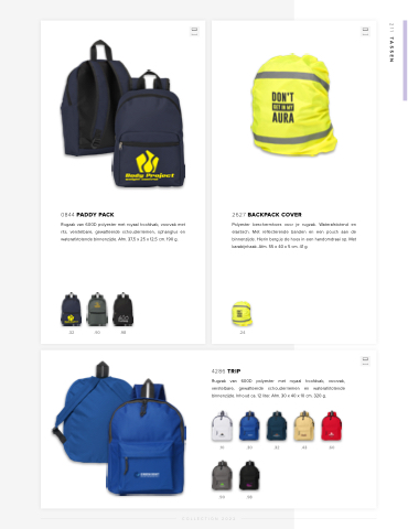 Polyester beschermhoes voor je rugzak. Waterafstotend en elastisch. Met reflecterende banden en een pouch aan de binnenzijde. Hierin berg je de hoes in een handomdraai op. Met karabijnhaak. Afm. 55 x 40 x 5 cm. 41 g.