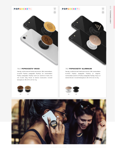 Handig, multifunctioneel telefoonaccessoire. Met verwisselbare, kunststof PopGrip (swappable PopGrip). De verwisselbare PopTop (swappable PopTop) heeft een aluminium frame met een houten inleg. Keuze uit diverse houtsoorten. Inclusief lasergravure. Afm. Ø 4 x 2,4 cm. 9 g.